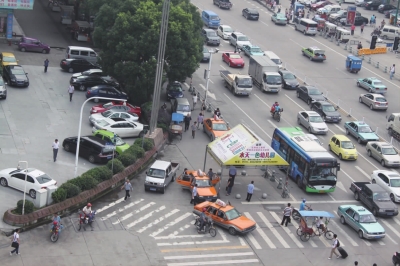 怎么去椒江、黄岩或临海最方便?在城区,随意拉个路人可能都会说“打的直达”。 哪里能最快找到直达目的地的的士?答案还是大同小异:在路桥大道的某个红绿灯路口。 无厘头的回答却是真实存在。位于西路桥大道与银安街交汇处红绿灯的西北面,就是直达各地的的士聚集地,俨然是一个“红绿灯下的停车场”。 “早上很早的时候就会停着许多接客的的士,它们全部是往返临海与路桥的。”附近居民说道。 7月11日8时58分,记者在现场看到,用于右行车辆通行的副道上停靠着5辆橙色的士,呈三角分布,靠近绿化带处停着一辆,隔离栏杆右侧并列停着两辆,另外两辆的士则霸占着路人过红绿灯时的等待区,5辆的士之间只容一辆货车通过。 9时12分,一辆路桥本土的绿色的士停在橙色的士前下客,转眼间,绿色的士内的乘客又坐到了橙色的士里。随即,绿色的士直接在路口掉头往北开走,橙色的士则待在原地继续等客。 期间,记者发现,除了几辆的士从最右侧直行车道右转弯,大部分的车辆都会选择从右行的副道通行。在附近上班的张女士每日都需在路口右转,为此,她吃尽了橙色的士的苦。“橙色的士是在这个红绿灯载客的,每次总会有4-6辆车子同时等候,但这里红绿灯的等待区本来就小,橙色的士就直接停在右行通道上,有时干脆停在右行通道的进口处。这样,右行的车辆就被堵在通道口无法前进。” 与张女士有同样遭遇的车主不在少数,他们反映,每天上下班高峰期是这里最拥堵的时候,车辆多,的士客源也足,但交通却瘫痪了。 记者从橙色的士司机处获悉,每日6时至23时都会有的士在此等候客源,不管对方是拼车还是包车。 短评 红绿灯设立的本意就是为了更好地维护交通秩序,但变味的“停车场”似乎有些反其道而行,严重阻碍了右行车辆的通行,也影响到了路人在等候红绿灯时的安全。相关部门是否该对出租车进行更为规范的管理,对来自周边城区的出租车也该设立统一、合适的临时停靠点,才妥。 |