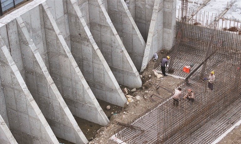 连日来,中央山绿轴公园南区工地一派繁忙景象,各项建设有力有序推进。图为工人们在繁忙劳作的身影。