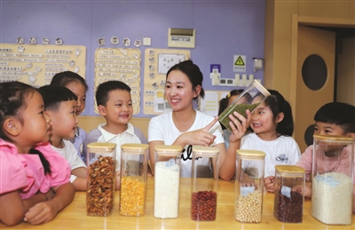 10月16日是世界粮食日。10月15日,路北街道铭泰社区联合南官实验幼儿园开展了“认识粮食、节约粮食、爱惜粮食”宣传活动,把节粮意识注入童心。图为老师给小朋友讲节约粮食常识。
