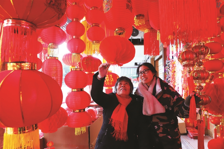随着春节脚步日益临近,新春饰品市场逐渐升温。日前,在路桥街道市场街的一家饰品店内,不少市民正在选购灯笼、春联等节日饰品。