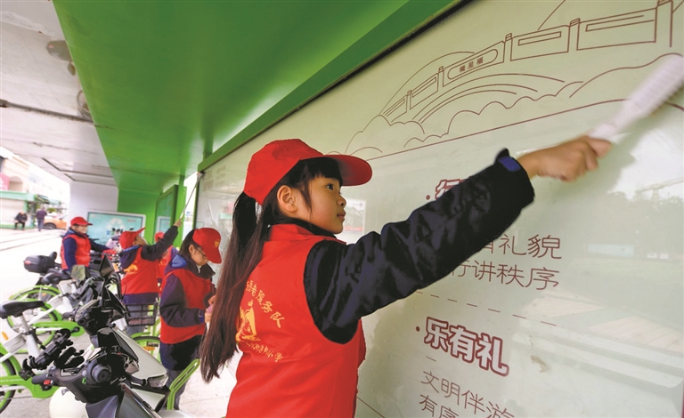 3月4日,路北街道中心小学的小志愿者们走上街头,清洁、整理公共自行车和自行车亭。在学雷锋纪念日到来之际,该校开展丰富多彩的“学雷锋”主题活动,学生们走出校园来到街头、公园,以义务劳动的形式弘扬和传承雷锋精神。