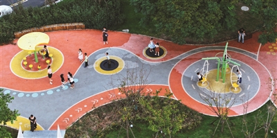 10月12日,许多小朋友在路北街道铭泰社区的一处“口袋公园”玩耍。近年来,我区各地用好城市“边角料”,建设起一批口袋公园,为大人和小孩在家门口观光游玩创造舒心环境。